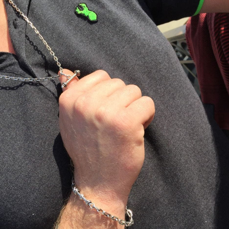 T-bar Spiral Barbell Pendant with Anchor Chain - Handcrafted Unique Jewelry
