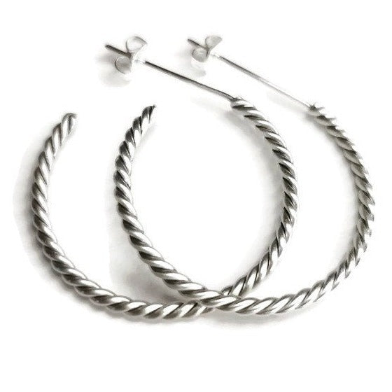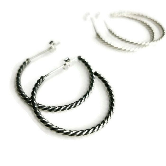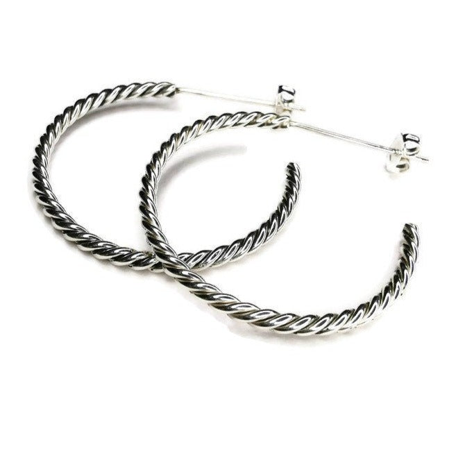 Elegant Twisted Rope Hoop Earrings with Push-Back Closure - Available in 3 Finishes