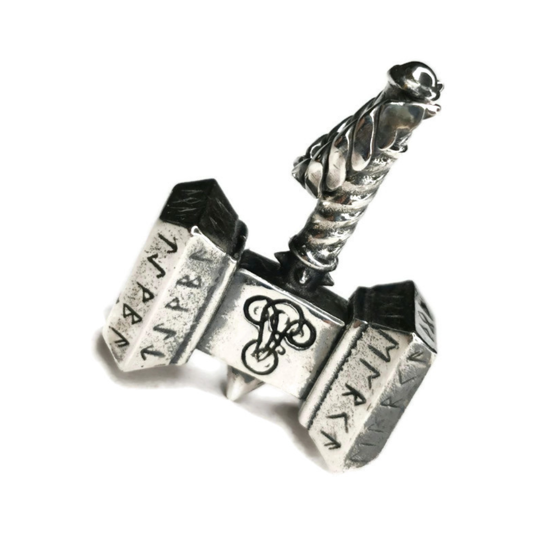 Unleash your inner strength with the stylish Silver Mjolnir Necklace from Pavlove Jewelry. Inspired by Norse mythology, this powerful pendant is the perfect symbol of fearlessness and force. Decorated with Icelandic magical staves (galdrastafir) and a triquetra (also known as a "Trinity knot"), the mysterious pendant is sure to catch the attention of others.