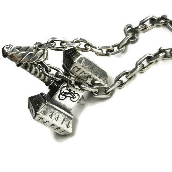 Silver Thor's Hammer Necklace for Men - Norse Celtic Mjolnir Pendant