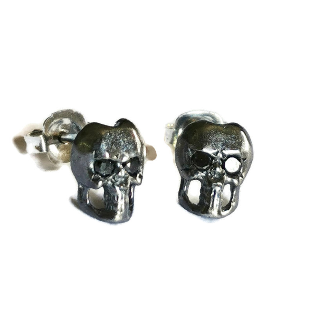 Black Diamond Pirate Skull Stud Earrings - Adventure-Inspired Jewelry for Any Occasion